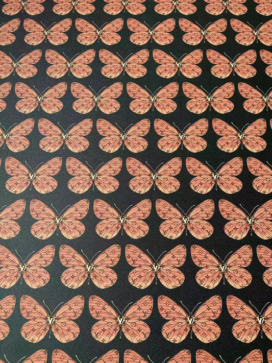 Fashion LV With Butterfly Leather Fabric For Handmade Sneaker,Bag,Clothing Goods By Yard