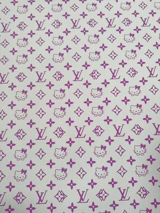 Fashion LV With Hello Kitty Crafting leather fabric Bag leather ,shoes ,Handicraft leather(Purple)