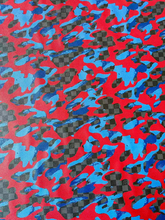 Classic Red With White LV Vinyl leather fabric For Handmade Bag ,DIY shoes , Car leather By Yard