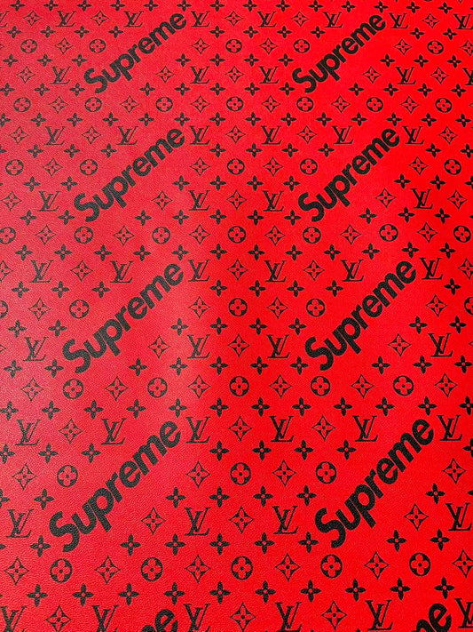 Fashion LV Red With Black Supreme Leather Case Fabric For Handmade Bag, Shoes Goods By Yards