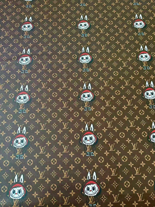 Craft LV With Labubu Leather Fabric For Handmade Sneaker, Bag,DIY Gift Goods By Yard
