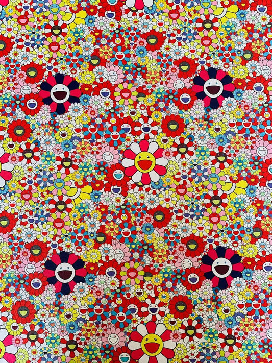 Takashi Murakami Leather Fabric ,Smile Face Flower Leather Hand-made Shoes Leather ,Hand-made Bag Leather By Yard