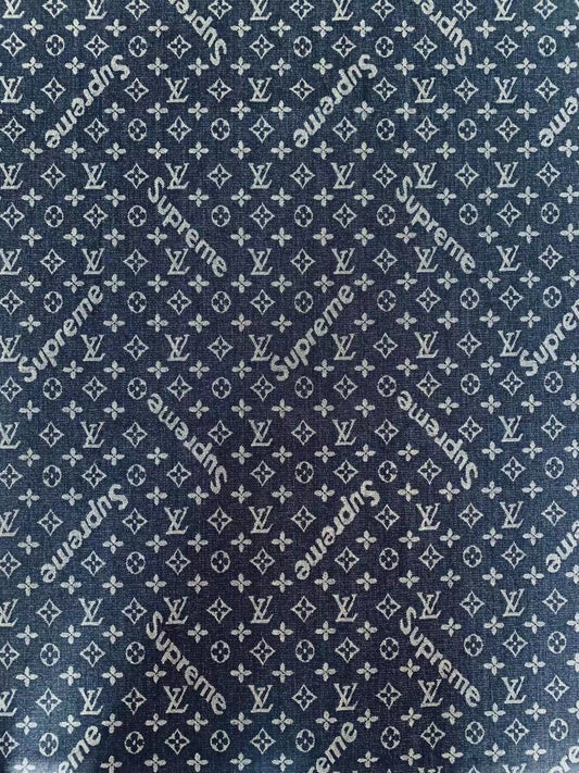 Classic LV With Supreme Denim Woven Jacquard fabric , Jean Fabric For Handmade Goods By Yard ( Dark Blue )