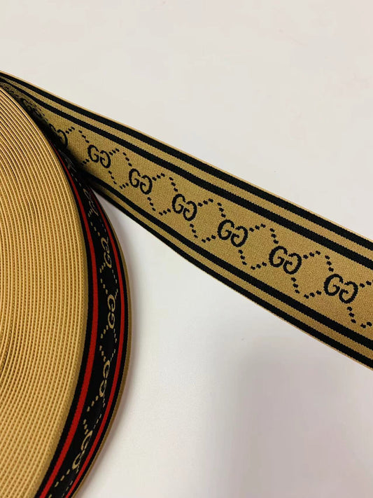 Fashion Gucci Black With Red 2 inch Strap ,Elastic Ribbon Trim Embroidered For Handicrafts By Yard