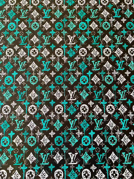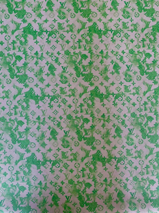 Classic Watercolour LV Vinyl Leather Case Fabric, Handmade Bag Fabric, Hand-made Shoes Fabric By Yard(Green)