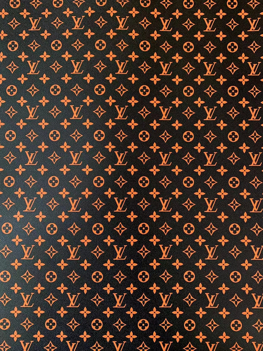 Classic Black With Orange LV vinyl crafting leather fabric For Handmade Shoes ,Bags and DIY Handicrafts By Yard