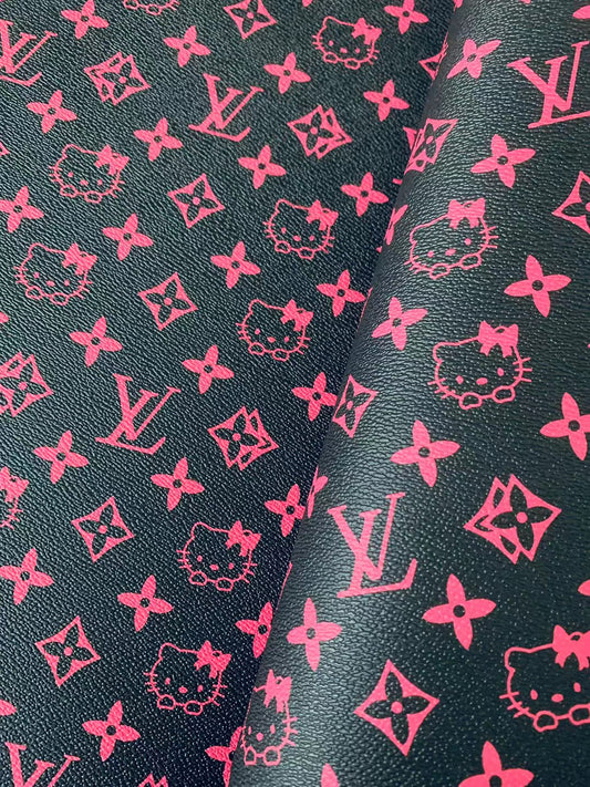 Fashion Black With Pink LV Hello Kitty Vinyl Leather For Bag ,Shoes ,Handicraft Upholstery By Yards