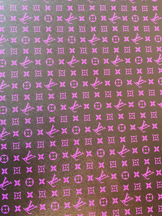 Fashion LV Black with Purple Design Vinyl Leather Fabric For Handmade Shoes , Handmade Sneakers ,Bags By Yards