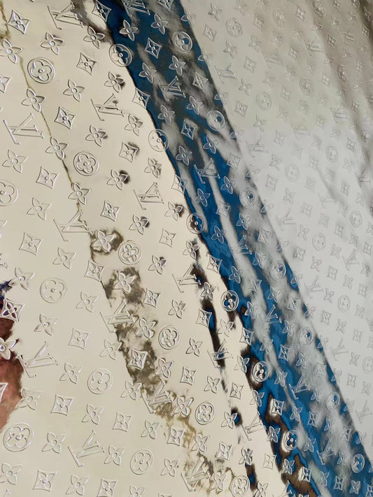 Classic Embossed LV Craft Leather Fabric Shoes Leather , Bags Leather Fabric By Yards (Sliver)
