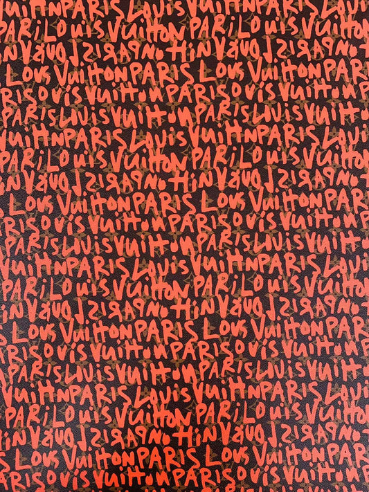 Classic LV With Graffiti Letter Design Vinyl Leather for Handmade Shoes ,Handmade Bags Leather By Yard (Orange )