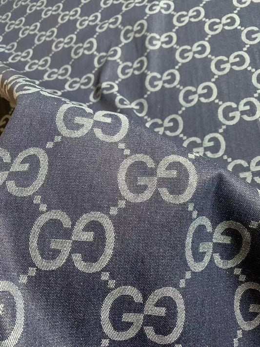 Classic 2 Inch Original 100% Cotton Gucci Denim Woven Jacquard fabric , Jean fabric For Handmade Apparel, Upholstery By Yard