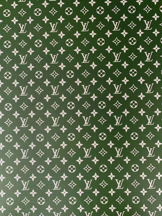Fashion LV vinyl crafting leather fabric For Handmade Shoes,Bags ,Furniture ,Motorcycles ,Handicrafts By Yard (Green)