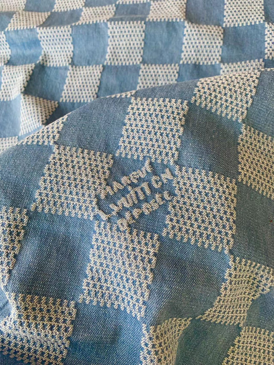 Craft Wash LV Damier Jacquard Denim Jean Fabric For Handmade Sewing DIY Upholstery ,Apparel By Yard