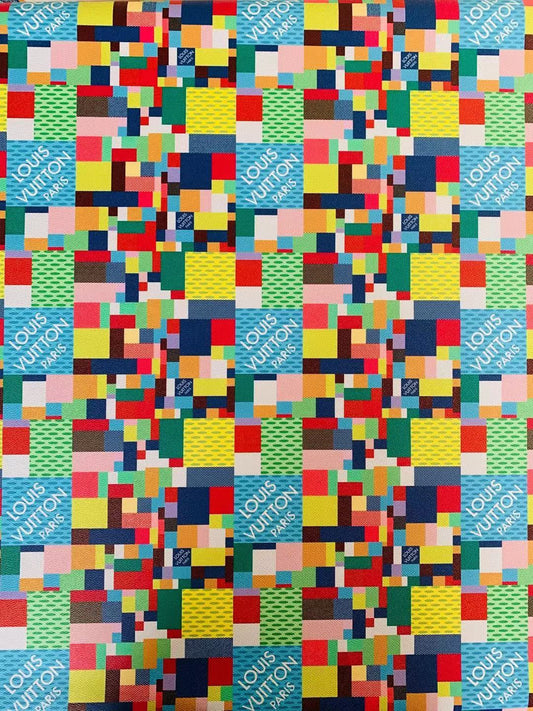 Classic Louis Vuitton Geometric square Leather Case Fabric ,Handmade Bag Leather ,Hand-made Shoes Leather Big with Small Grid Leather (Colorful Rainbow)