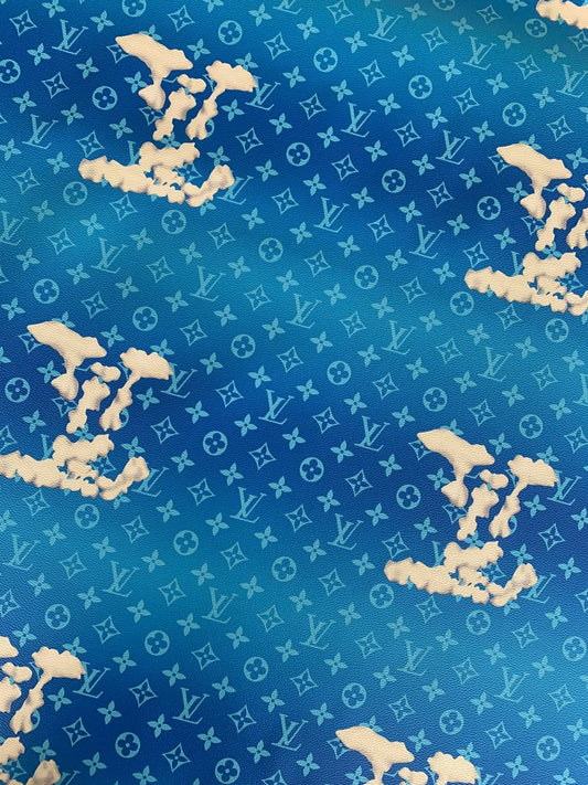 Classic Blue Cloud Pattern LV Leather Case Fabric,Handmade Bag Fabric,Hand-made Shoes Leather Fabric