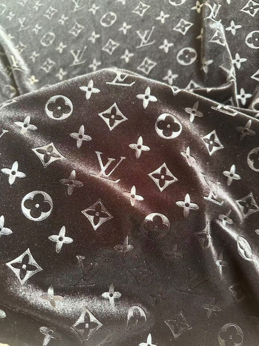 Popular Luxury LV Knitting Velvet Fabric For Handmade Sneaker,Car Upholstery and Apparel By Yard(Black)