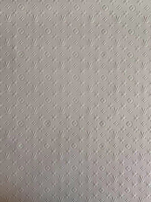 Fashion Embossed LV Crafting Leather Fabric For Handmade Bags ,Shoes and DIY Handicrafts By Yards (White)