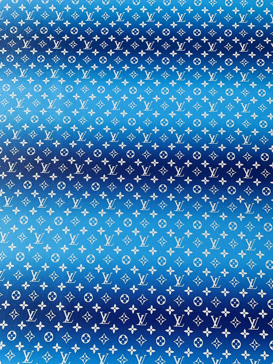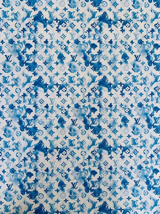 Classic Watercolour LV Leather Case Fabric, Handmade Bag Fabric, Hand-made Shoes Fabric By Yard (Blue)
