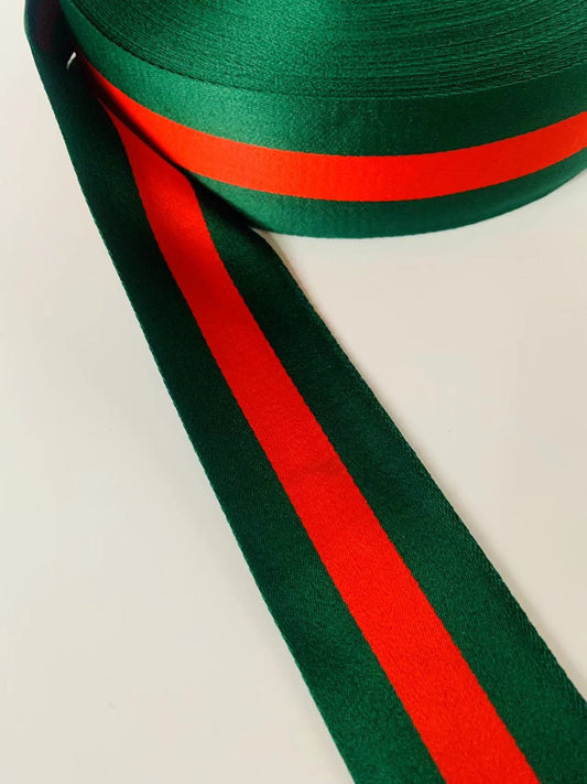 Fashion Gucci 2 inch Strap ,Handmade Striped Ribbon Trim Embroidered For shoes ,Bags ,Handicrafts By Yard (Green with Red )