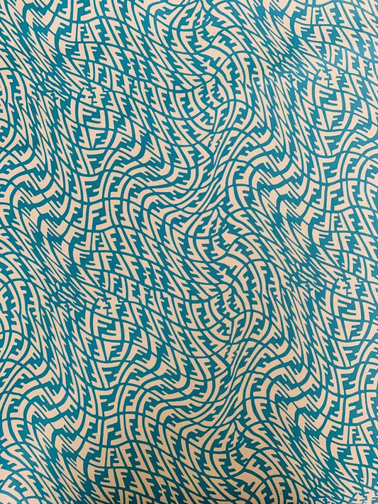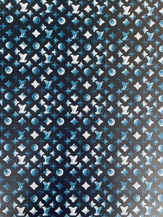 CLASSIC LV VARIATION BLUE DESIGN LEATHER CASE FABRIC, HANDMADE BAG FABRIC, HAND-MADE SHOES FABRIC BY YARD
