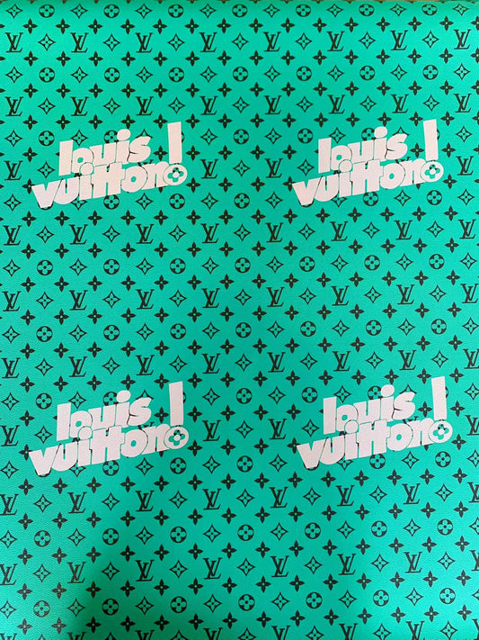 CLASSIC GREEN BIG LOUIS VUITTON DESIGN LEATHER CASE FABRIC, HANDMADE BAG FABRIC, HAND-MADE SHOES FABRIC BY YARD