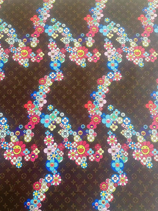 Fashion LV With Takashi Murakami Leather Fabric For Handmade Sneaker, Upholstery By Yard