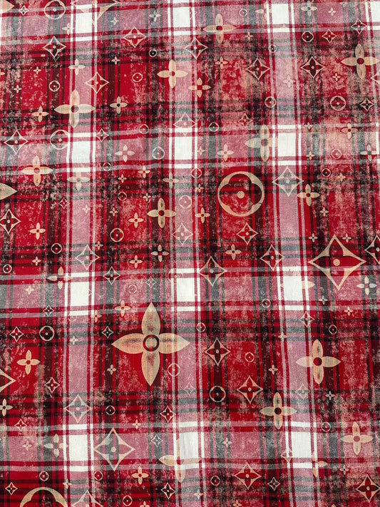 Craft 100% Cotton LV Yarn-dyed Plaid Shirt Fabric For Handmade Clothing,Shoes Goods By Yard (Red)