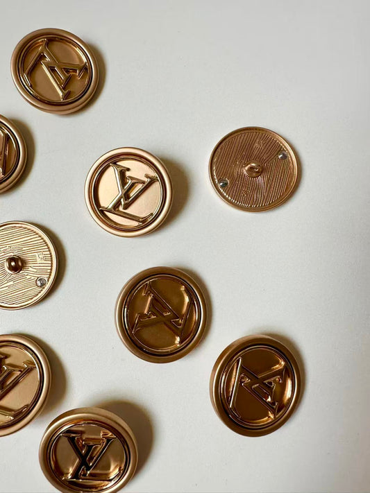 1 PC 1.25" Big Size LV Handicraft Button Metal Material For Apparel Jacket (Rose Gold)
