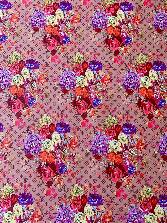 Fashion LV With Big Flower Craft Leather Fabric For Handmade Bag ,Sneaker,Upholstery Goods By Yard