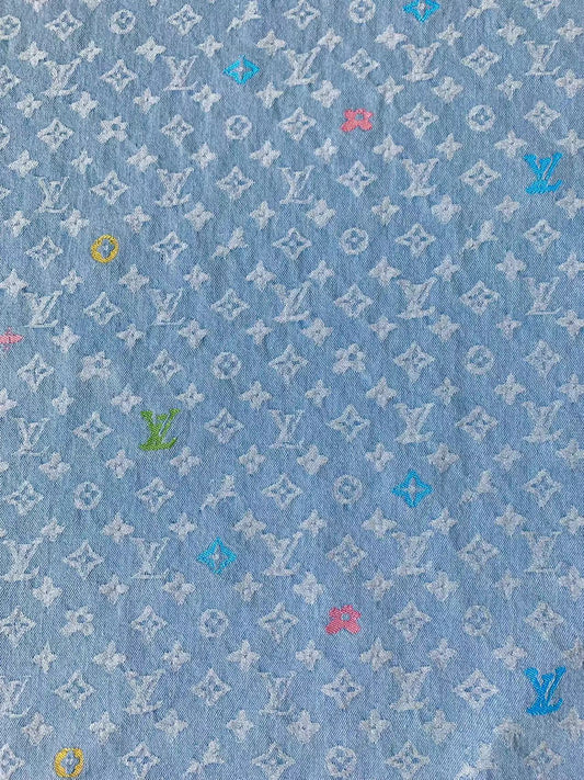 Fashion Colorful LV EmBroider Wash Denim Woven Jacquard fabric ,Jean Fabric For Handmade Goods