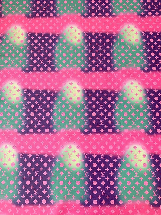 Craft LV Pink With White Graffiti Design Vinyl Leather For Handmade Handicraft Goods By Yard