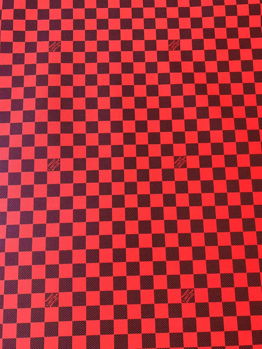 Craft 3.5 CM Red Plaid LV Vinyl Leather Fabric For Handmade Bag ,Sneaker,Upholstery Handicraft