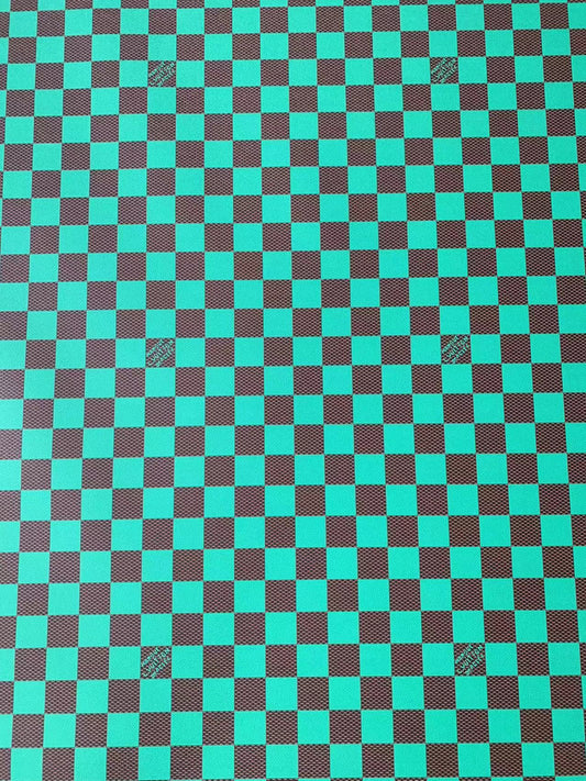Craft 3.5 CM Green Plaid LV Vinyl Leather Fabric For Handmade Bag ,Sneaker,Upholstery Handicraft