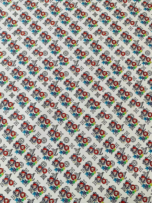 Fashion LV with Cute Flower Design Lether Fabric For Handmade Sneaker, Upholstery Handicraft Goods By Yard