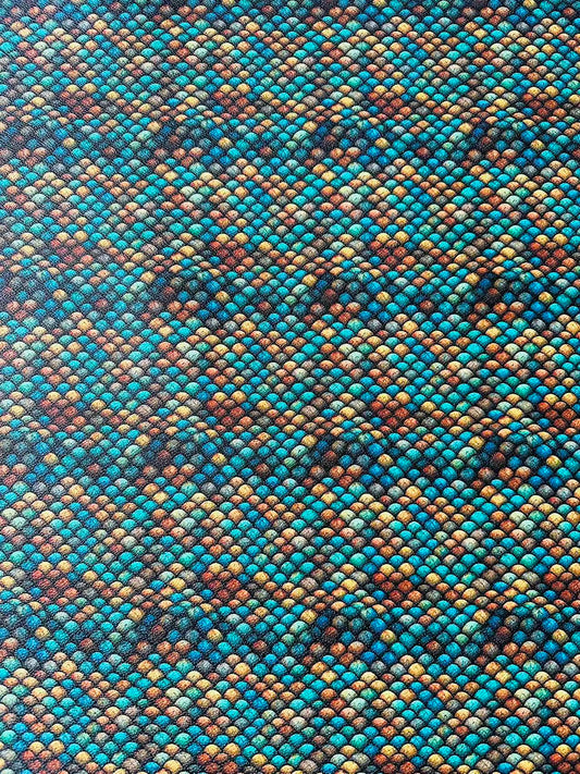Fashion Colorful Fish Scales Design Leather Fabric For Handmade Handicraft Goods By Yard