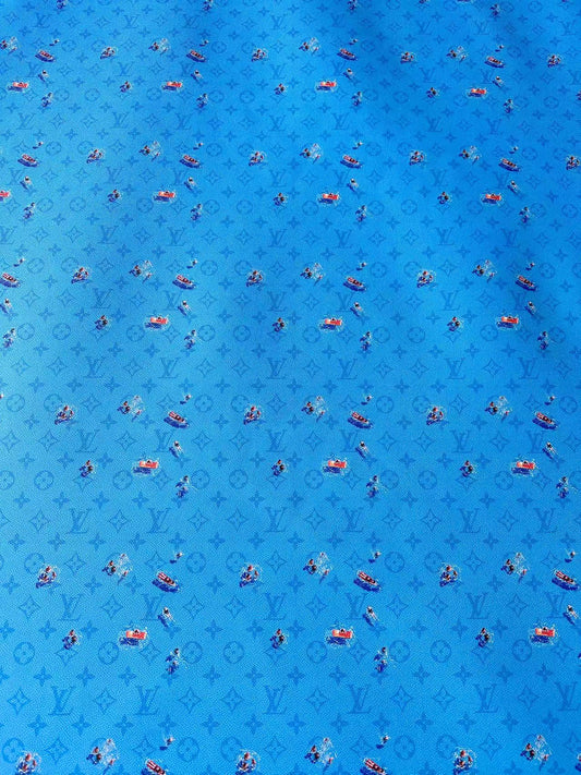 Craft Blue Swimming LV Leather Fabric For Handmade Shoes ,Bag ,Upholstery Goods By Yard