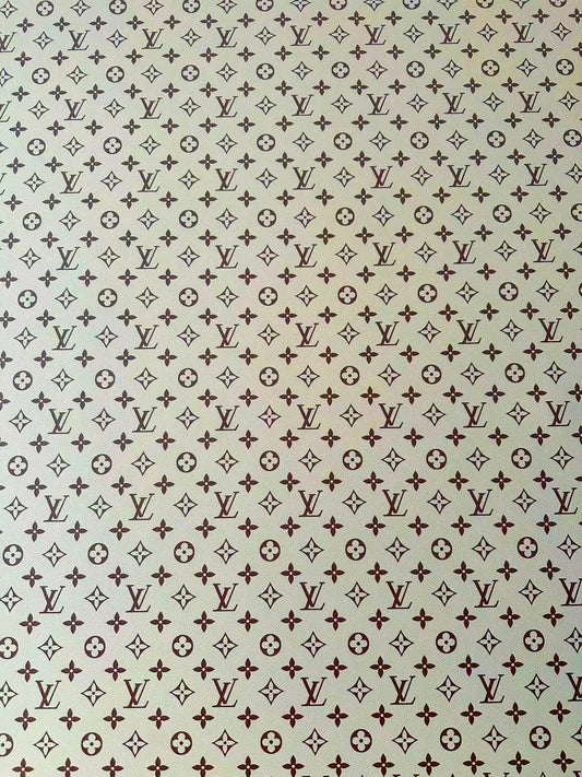 Craft Ivory With Brown LV Vinyl Leather Fabric For Handmade Sneaker,Bag ,Upholstery Goods By Yard