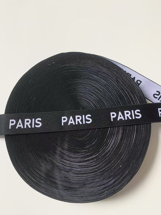 Fashion Black With White Paris 1.6 inch Elastic Strap ,Handmade Striped Ribbon Trim Embroidered For Handicrafts By Yard