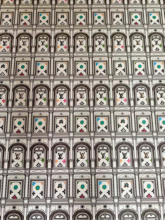 Fashion White LV With Window Deisgn Leather Fabric For Handmade Shoes ,Upholstery ,DIY Goods By Yard
