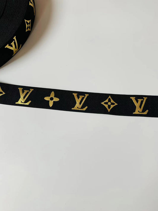 Fashion LV Gilding Technology 1.4 inch Strap ,Elastic Ribbon Trim Embroidered For Handicrafts By Yard