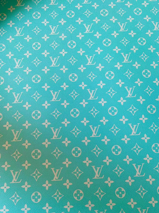 Classic Bright Blue LV Vinyl leather fabric For Handmade Handicraft Goods