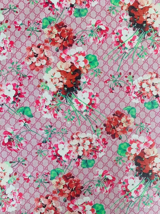 Classic Gucci Leather Case Fabric,Handmade Bag Fabric,Hand-made Shoes Fabric ( Pink Flower )
