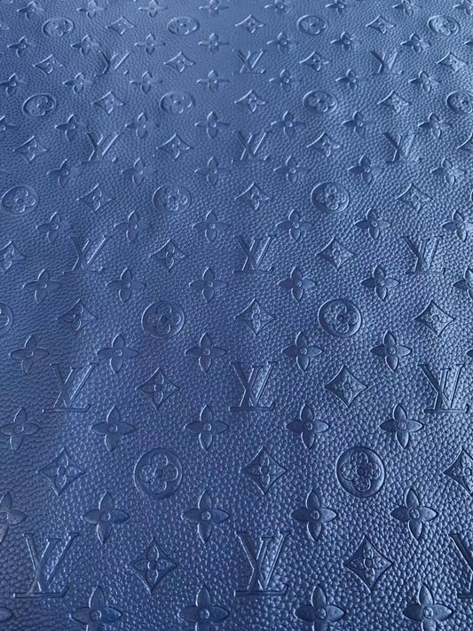 Fashion Embossed LV Crafting Leather Fabric For Handmade Bags and Shoes ,Handicrafts By Yards (Dark Blue)