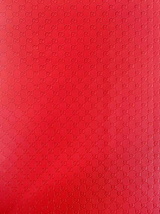 Classic Gucci Embossed Craft Leather Fabric Shoes Leather , Bags Leather Fabric By Yards (Red)