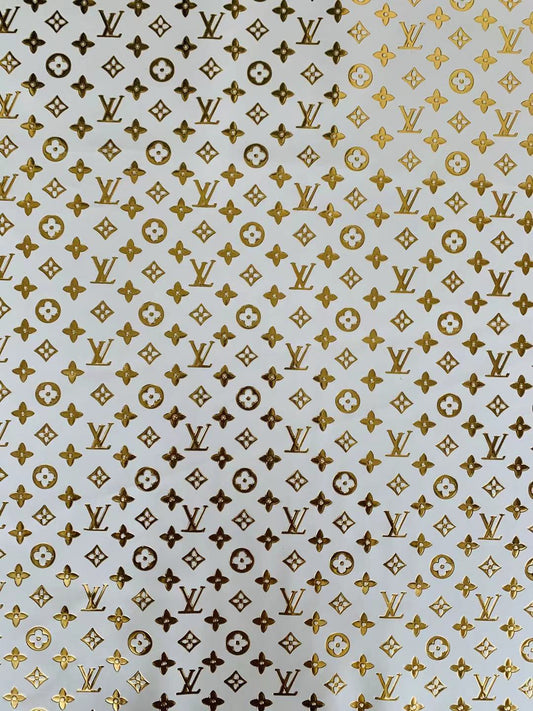 Classic LV Gilding Embossed Leather Fabric ,Handmade Bags Leather ,Handmade Shoes Leather By Yard(white with gold word)