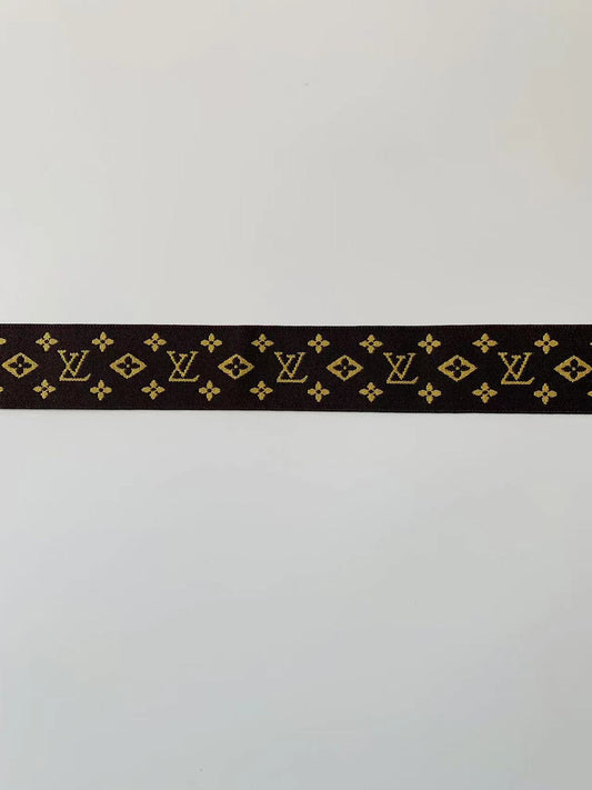 Fashion LV 1.5 inch Elastic Strap ,Handmade Striped Ribbon Trim Embroidered For Handicrafts By Yard(Brown)