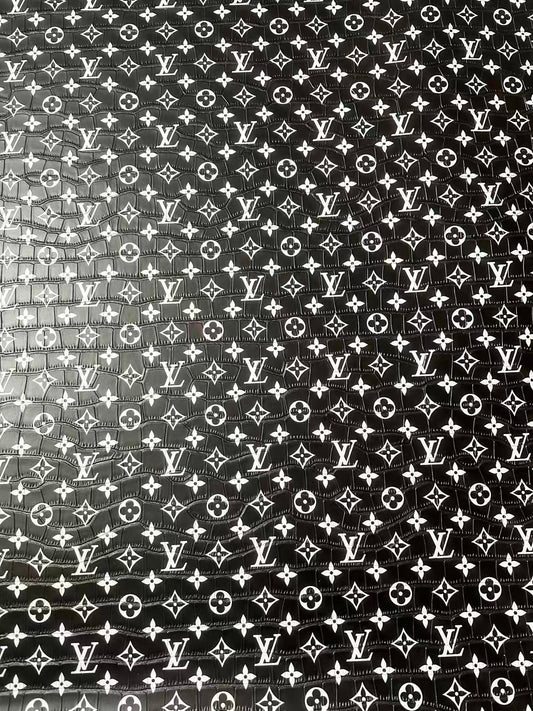 Craft LV Crocodile Texture Alligator Leather Fabric For Handmade Sneaker, Bag Upholstery Goods By Yard (Black)