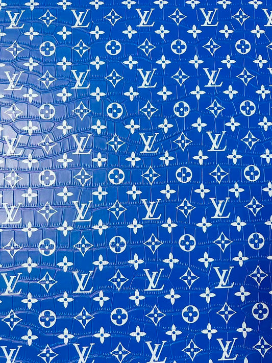 Craft LV Crocodile Texture Alligator Leather Fabric For Handmade Sneaker, Bag Upholstery Goods By Yard (Blue)