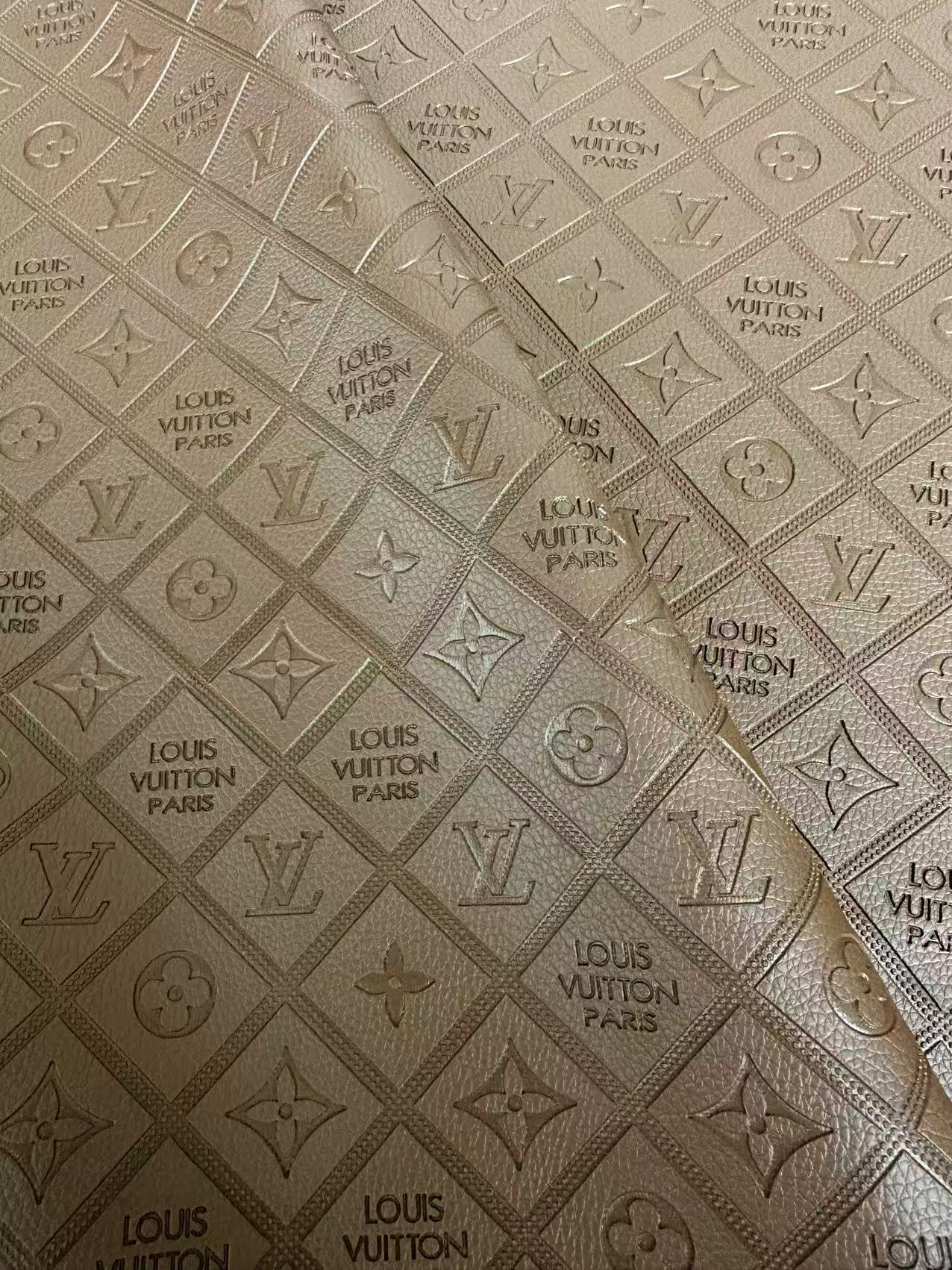 Craft Brown Chocolate LV Embossed Leather For Handmade Bag ,Shoes,Car Seat Goods By Yard