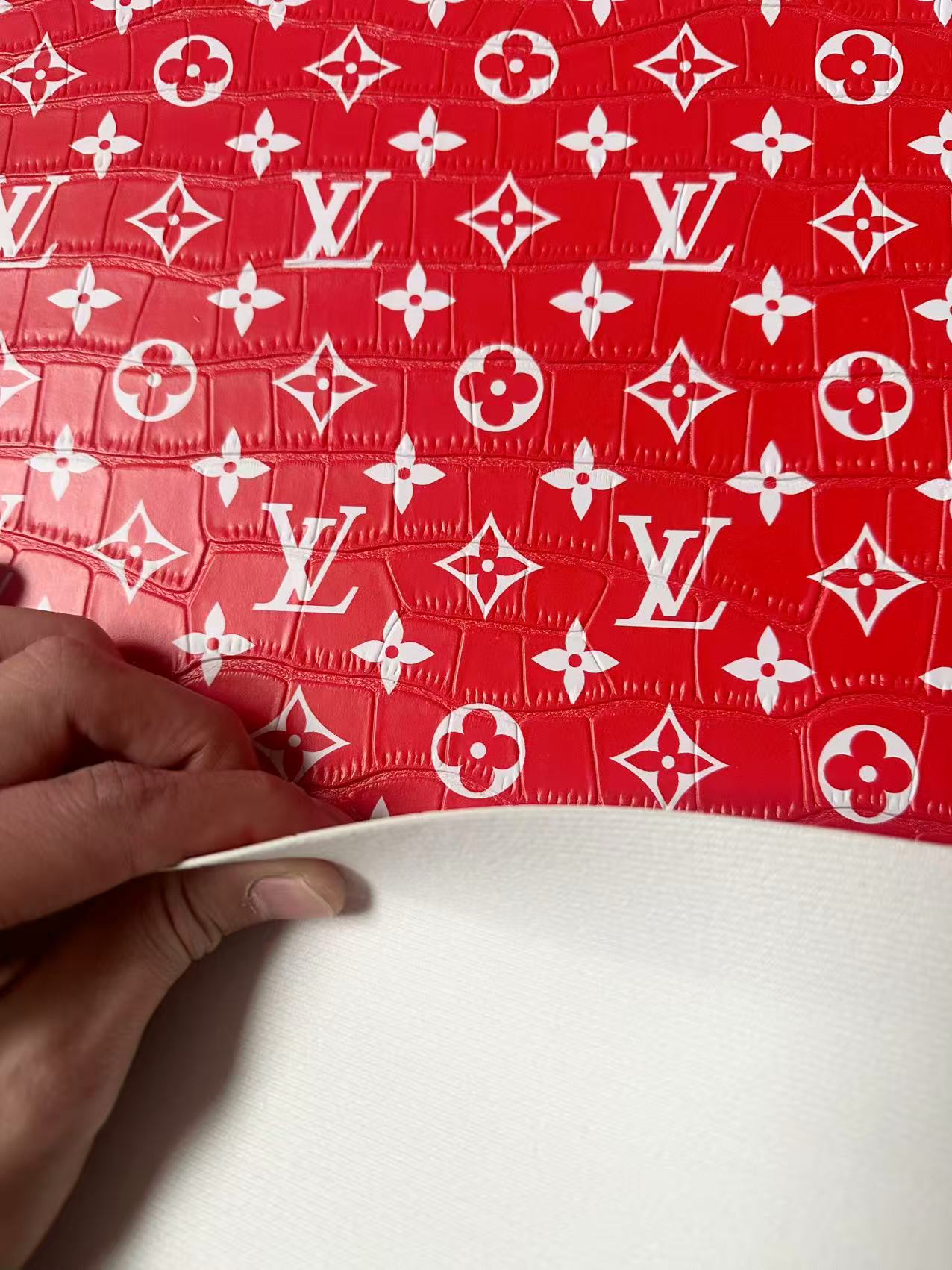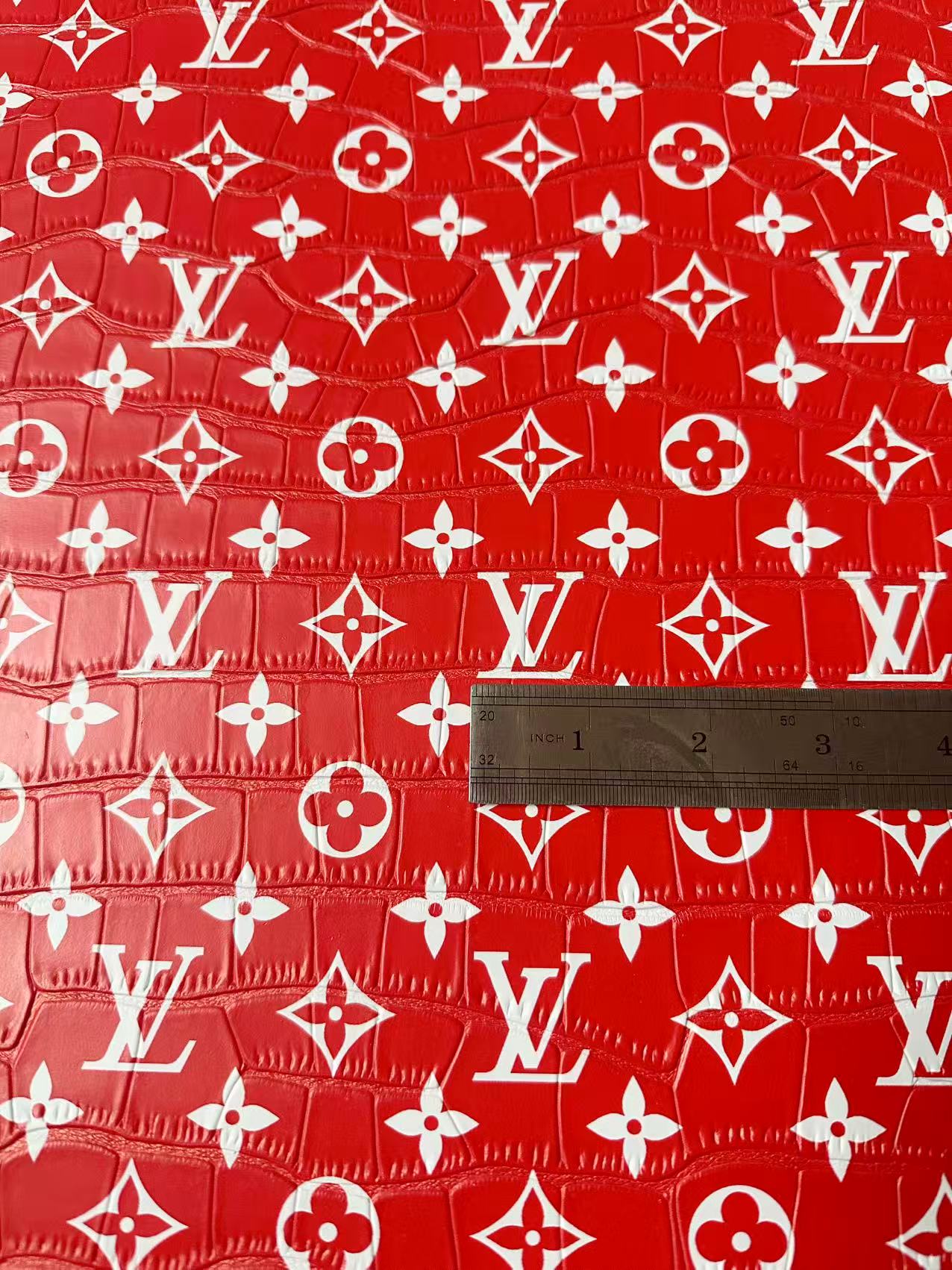Craft LV Crocodile Texture Alligator Leather Fabric For Handmade Sneaker, Bag Upholstery Goods By Yard (Red)